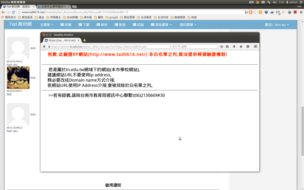 tad老師您的網站點台南市openid進入,會出現如附圖一無法進入現象,學校網站會不會也是因為如此被排除於白名單之外,附圖二查詢了openid網站登入使用次數畫面,不知是否有幫助