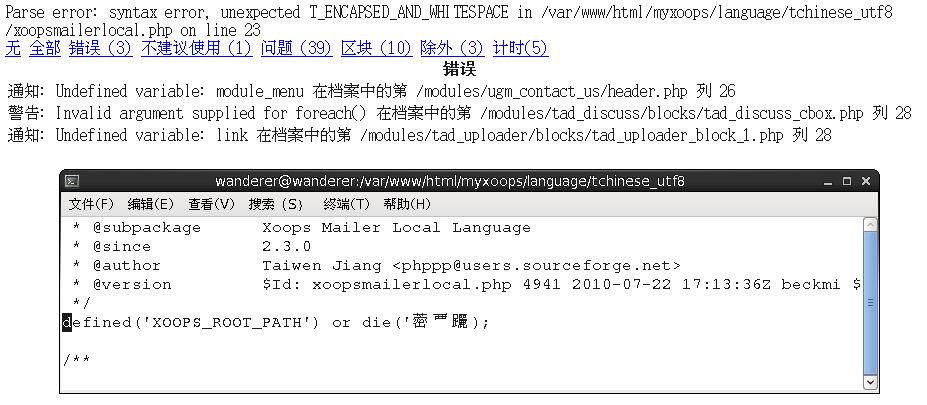 吴老师好,我把XOOPS轻松架中的语言文件夹tchinese_utf8进行了繁体-简体文字转换,安装ugm_contact_us模组时出现空白(有时其它模组安装时也有出现),开出错后提示如图。