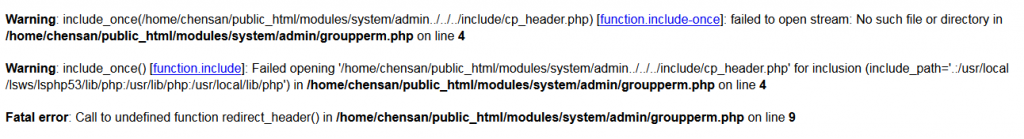 可以請您看一下 system/admin/groupperm.php 的第四行是哪一種寫法: