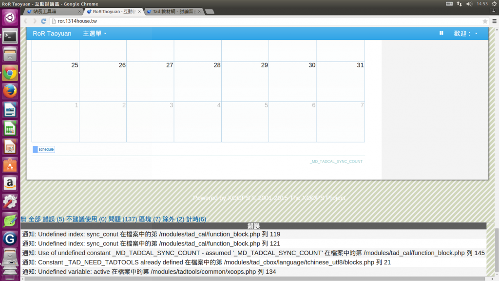 我一時興起,把 Xoops 2.5.7 整個移植到新的 Ubuntu 15.04 上頭,發現首頁變成空白,