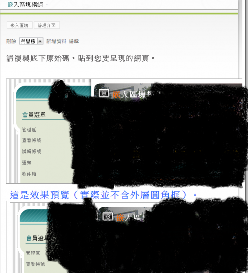 只是還有個問題尚未解決,崁入區塊的呈現面貌會包含網頁的佈景主題(網頁首頁畫面),