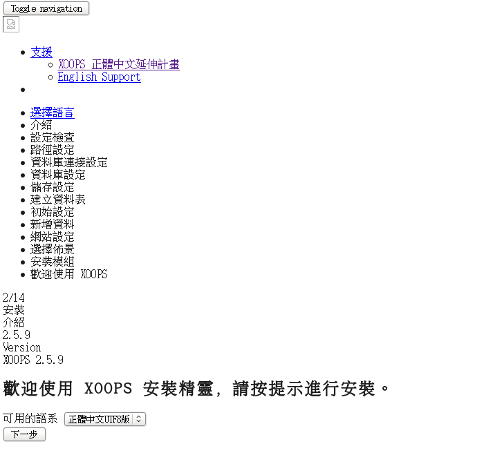 自己会跳转到http://localhost/xoops/install/index.php/xoops/install/page_start.php