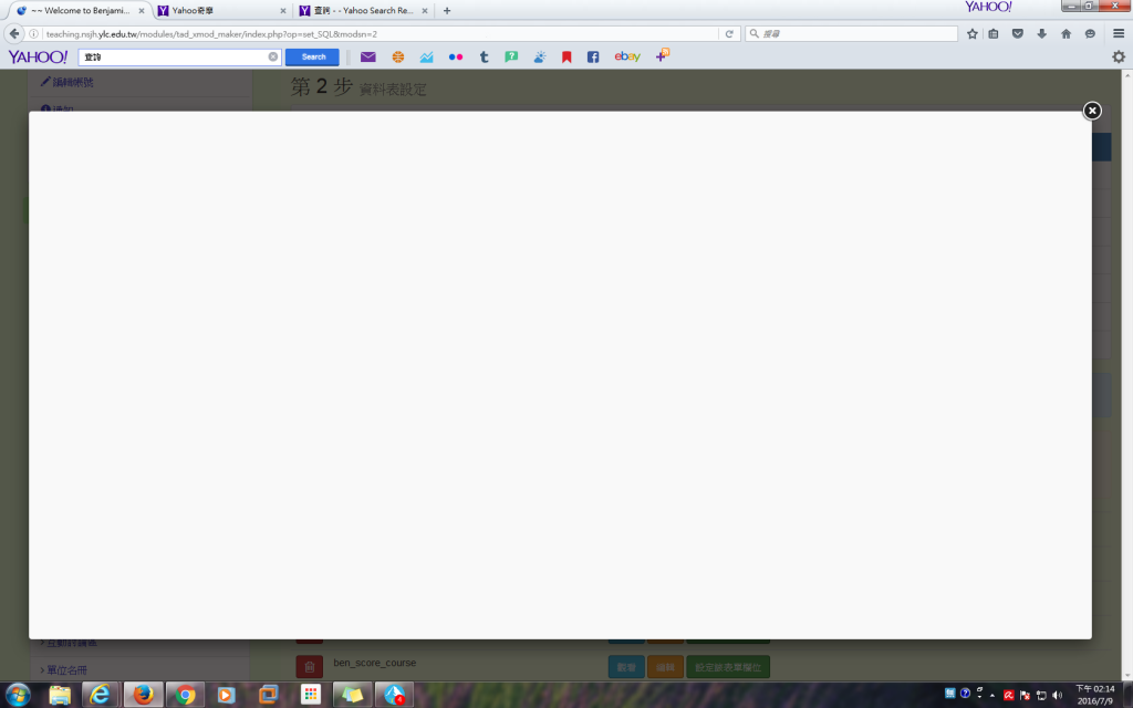 當我在第2 步 設定資料表...當我按下「觀看」、「編輯」、或「設定該表單欄位」時,都會出現一大片空白的方框,只右上角有小「x」,