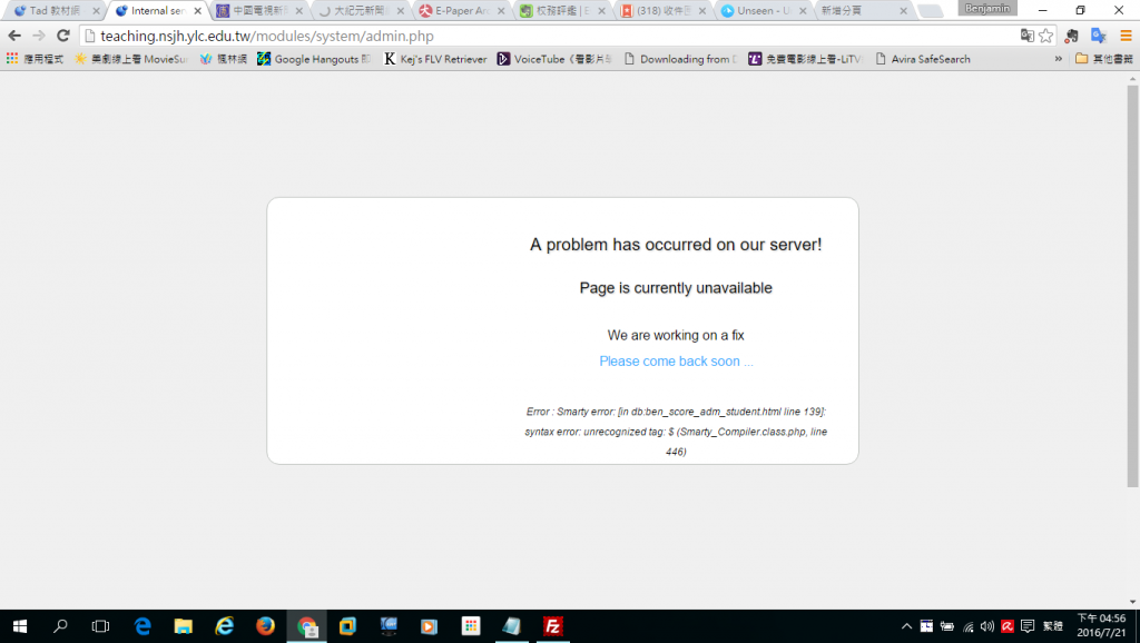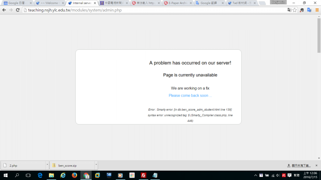 /etc/php5/apache2/php.ini 裡面的 display_errors 已請網管設定為 On,