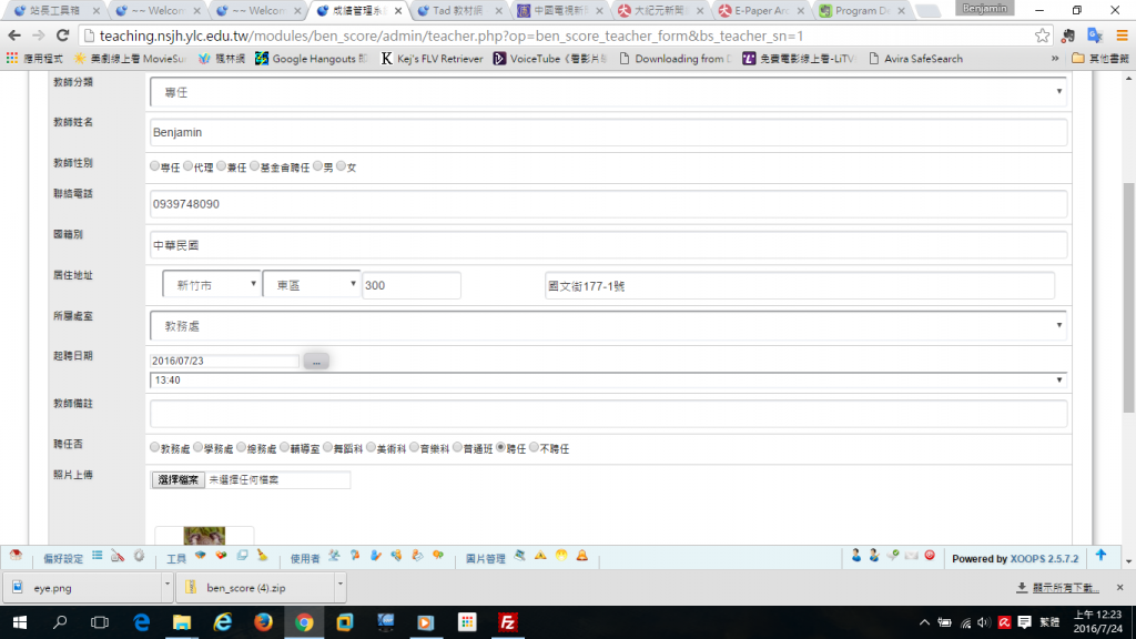 另外,我的「學生資料表」裏面有「學生照片」欄位,以後選擇該學生表單會出現他的照片。