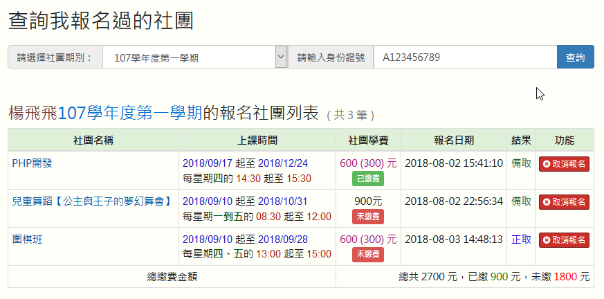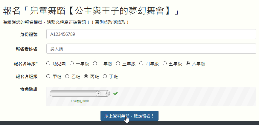 6.修正學生報名介面,身份證字號檢測提醒功能。