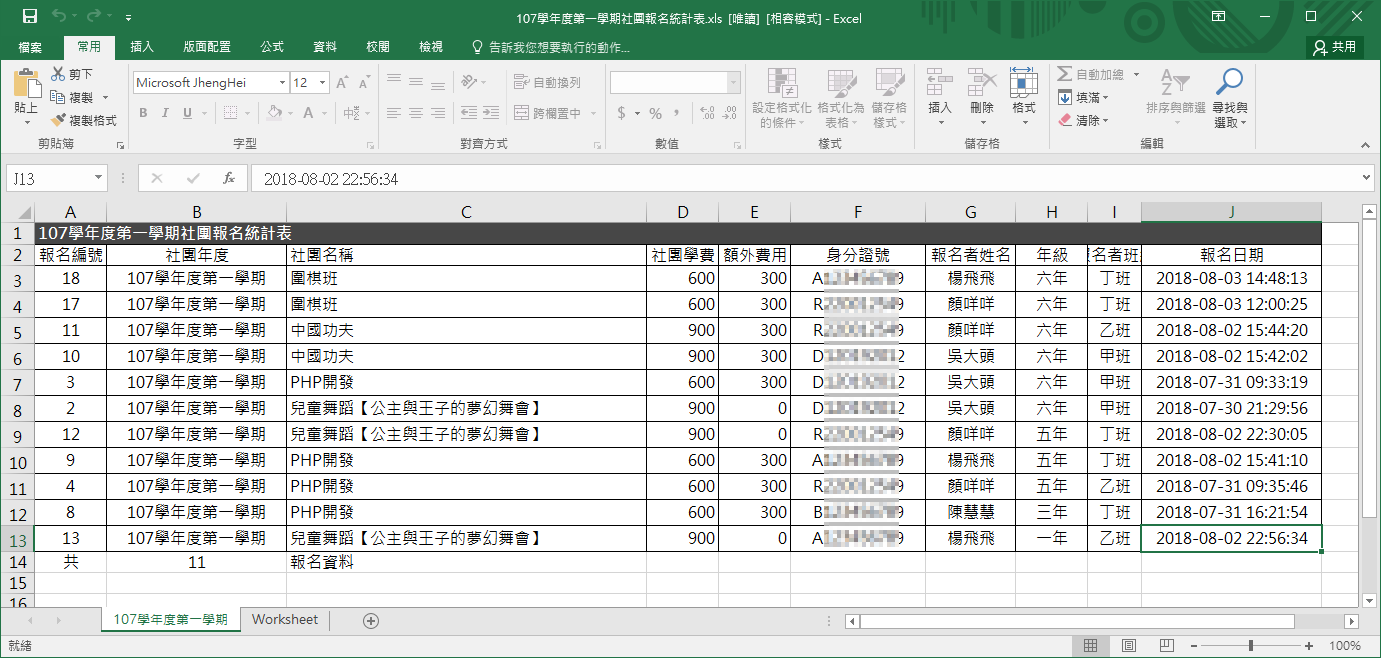 1.修正"報名狀況" 匯出Excel檔案受密碼保護無法修改的狀況!