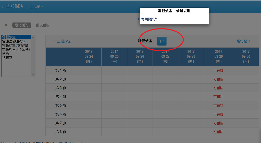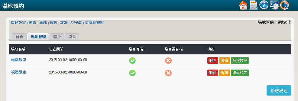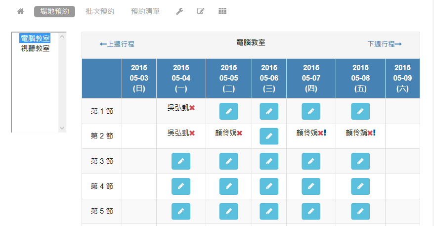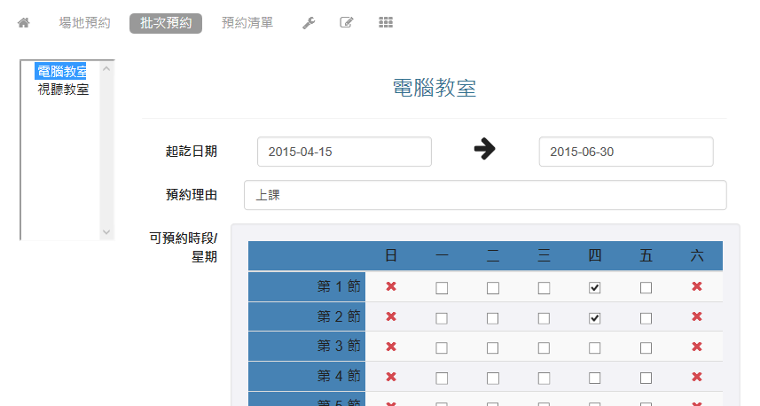 此模組的用途是提供場地預約的模組,提供個人預約及批次新增預約。