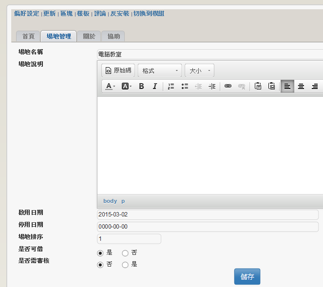 後台選單【場地管理】:新增(編輯)場地時,沒設停用日期,導致前台無法預約。