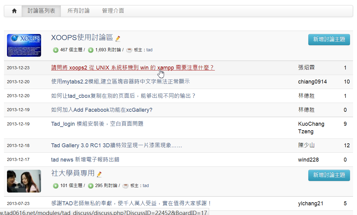 Tad Discuss 討論區模組 2.3 (2017-02-20 14:29:27 起被下載 1333 次)