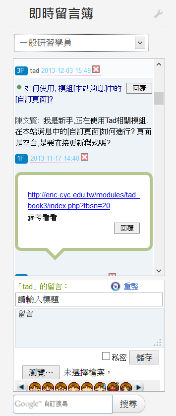 Tad Discuss 討論區模組 1.3 (2014-02-20 16:43:44 起被下載 1587 次)