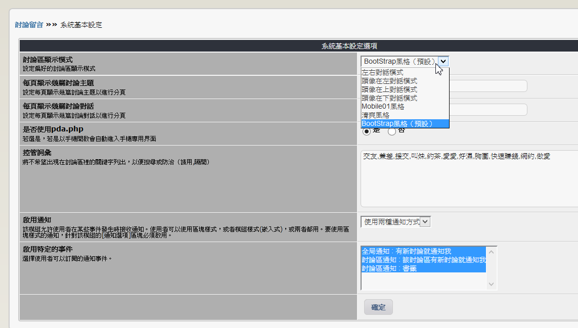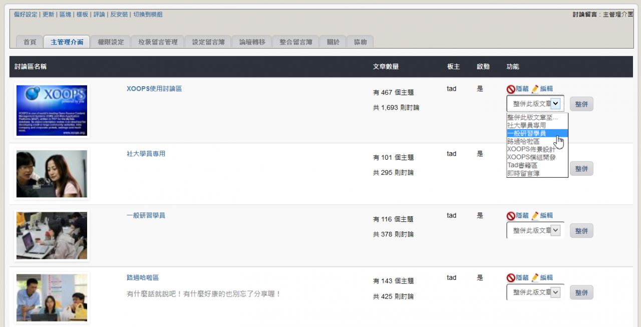 5. 修正當使用者只有站長一人時討論區無法選擇版主的bug
