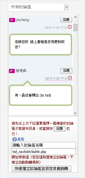 Tad Discuss 討論區模組 2.5 (2018-05-25 17:20:46 起被下載 1186 次)
